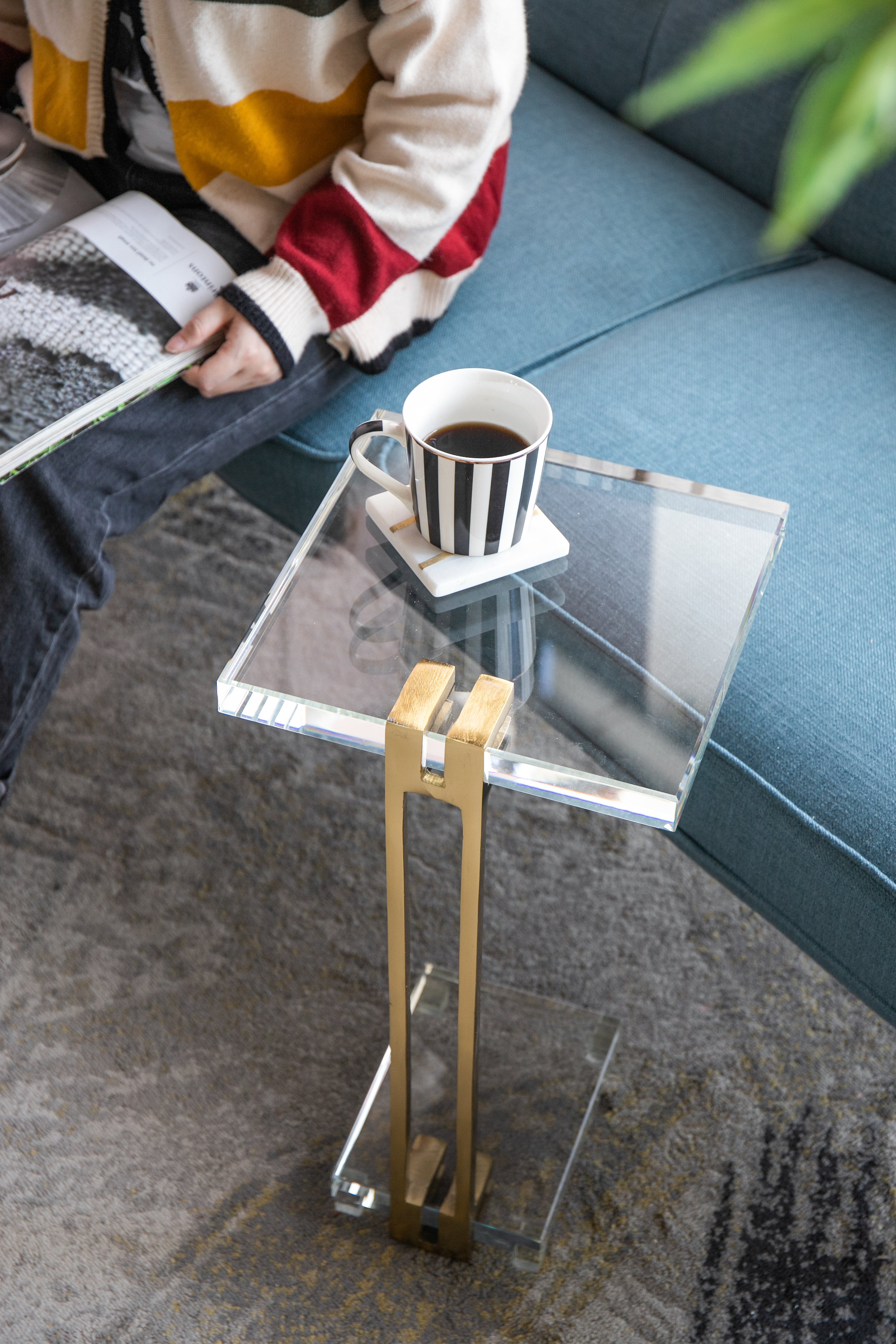 The luxurious clear and gold colorway ensures that this table can seamlessly complement modern, industrial, minimalist, and eclectic themed spaces, meaning you can easily slot it into your space.