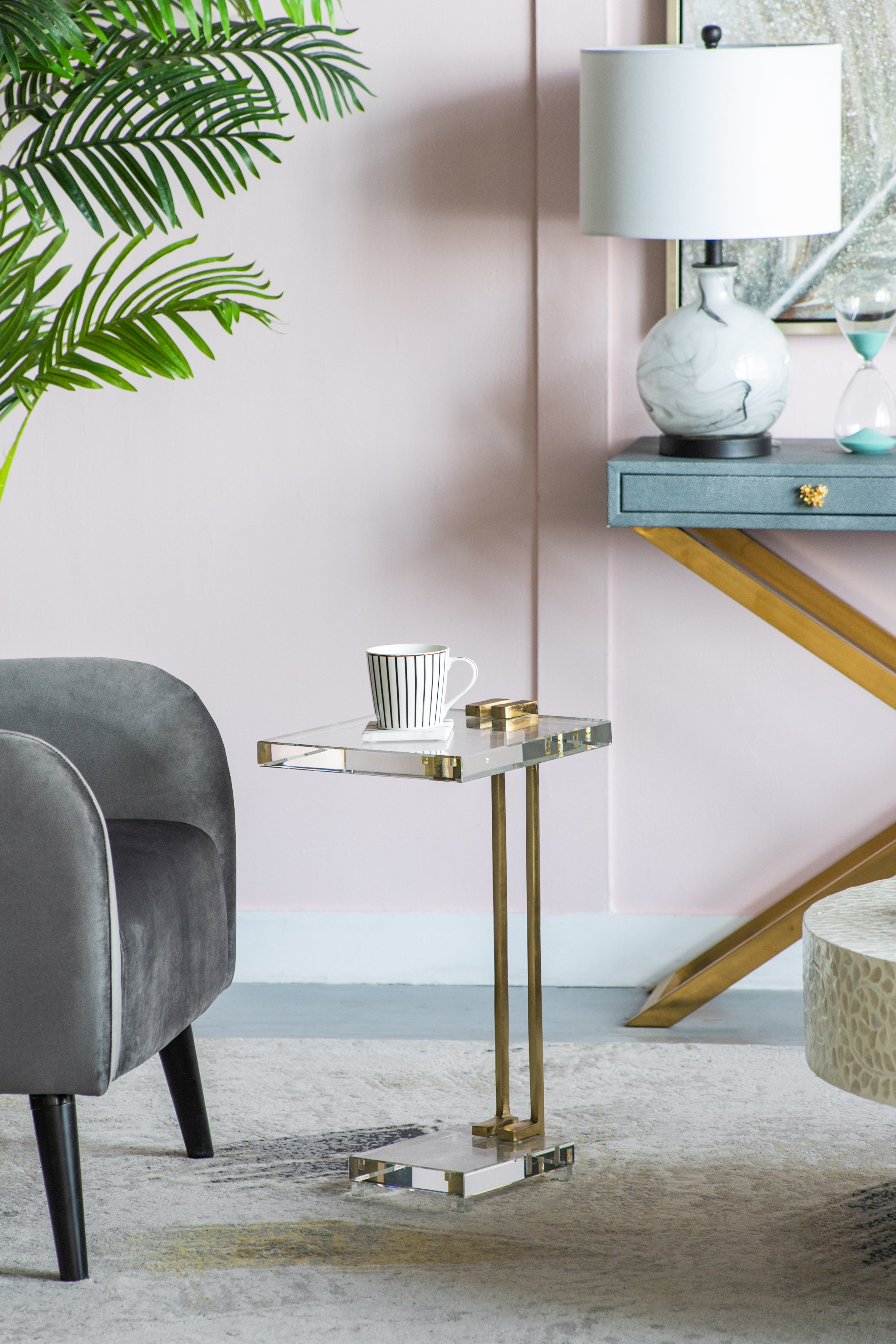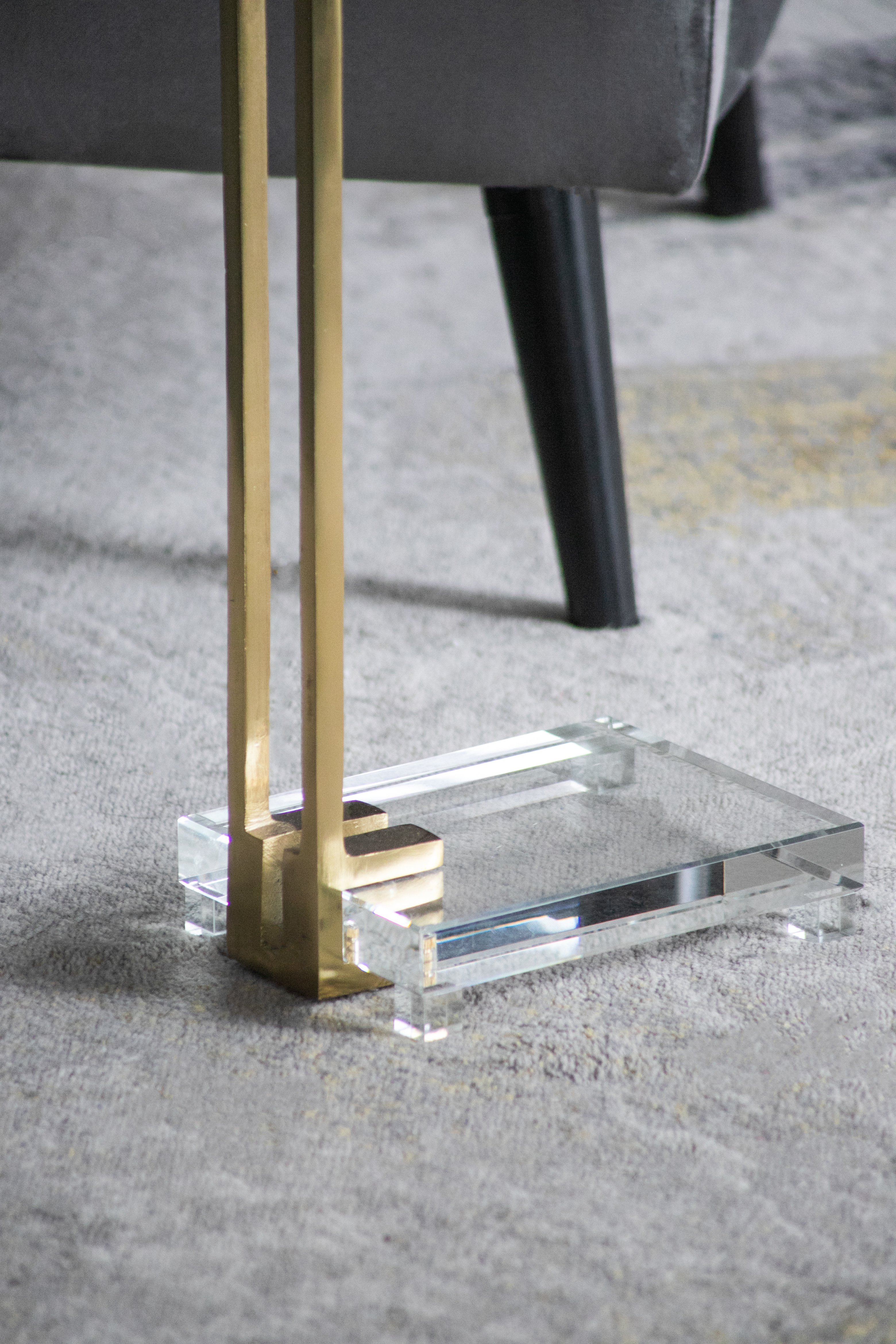 Description:The DesignCrystal and iron combine to give this end table a timeless quality, while the balanced design of the piece brings a distinctly modern feel. The slender frame makes it ideal for large and small spaces alike, with the extended tabletop still offering ample space for your glasses or remotes.