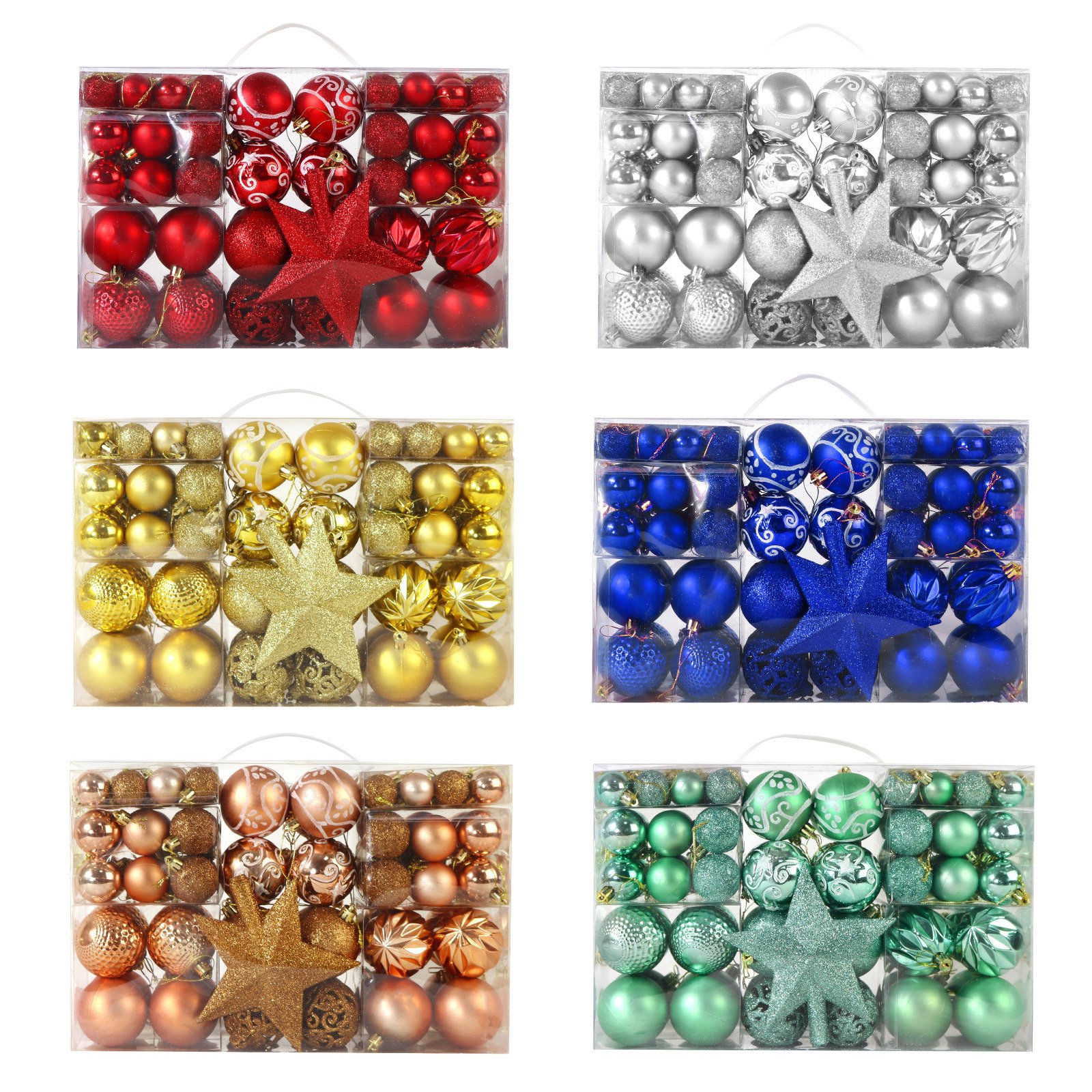 2.Features: With tree top star 101pcs Christmas ball gift box set