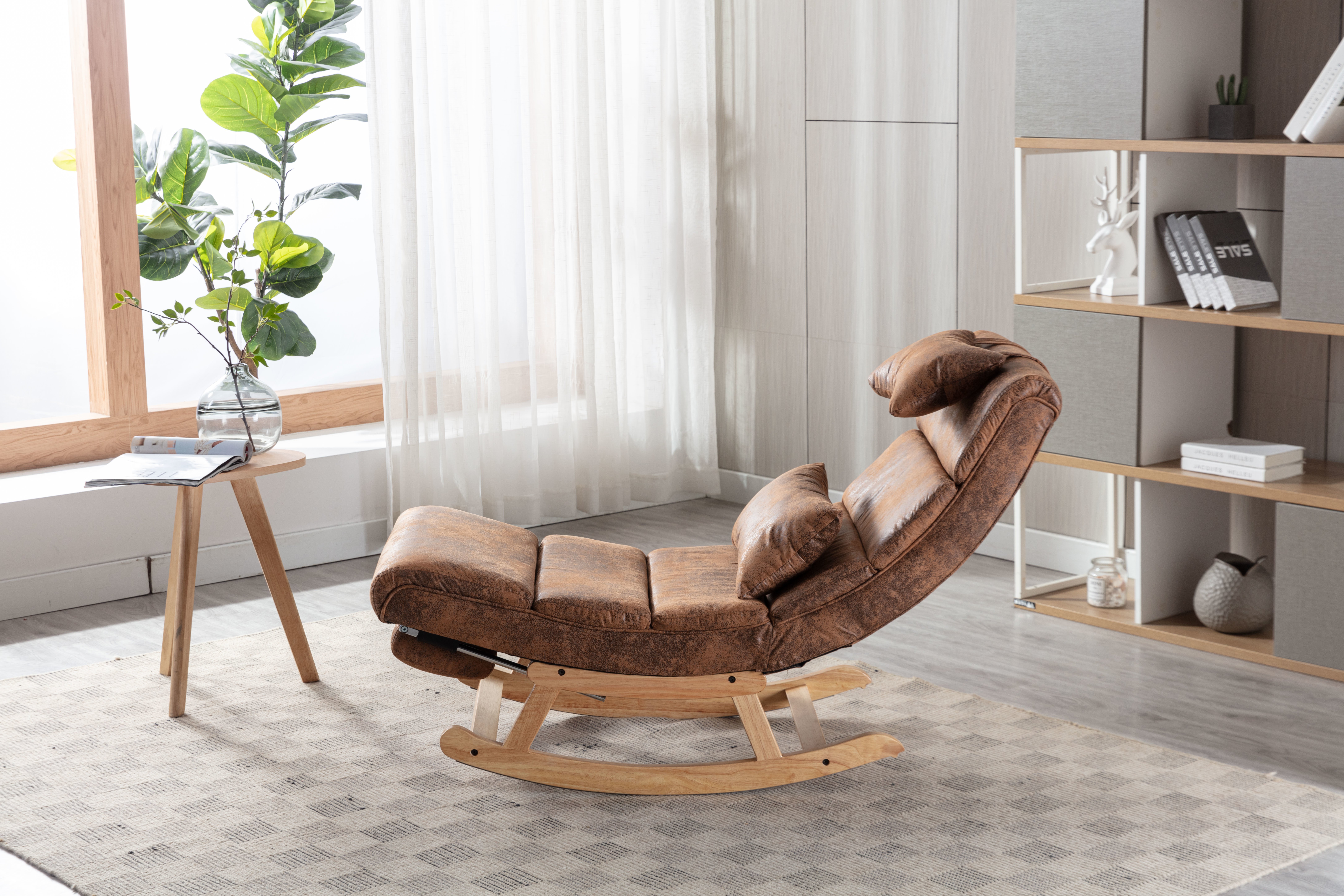 COOLMORE living room Comfortable rocking chair with Footrest/Headrest living room chair Beige