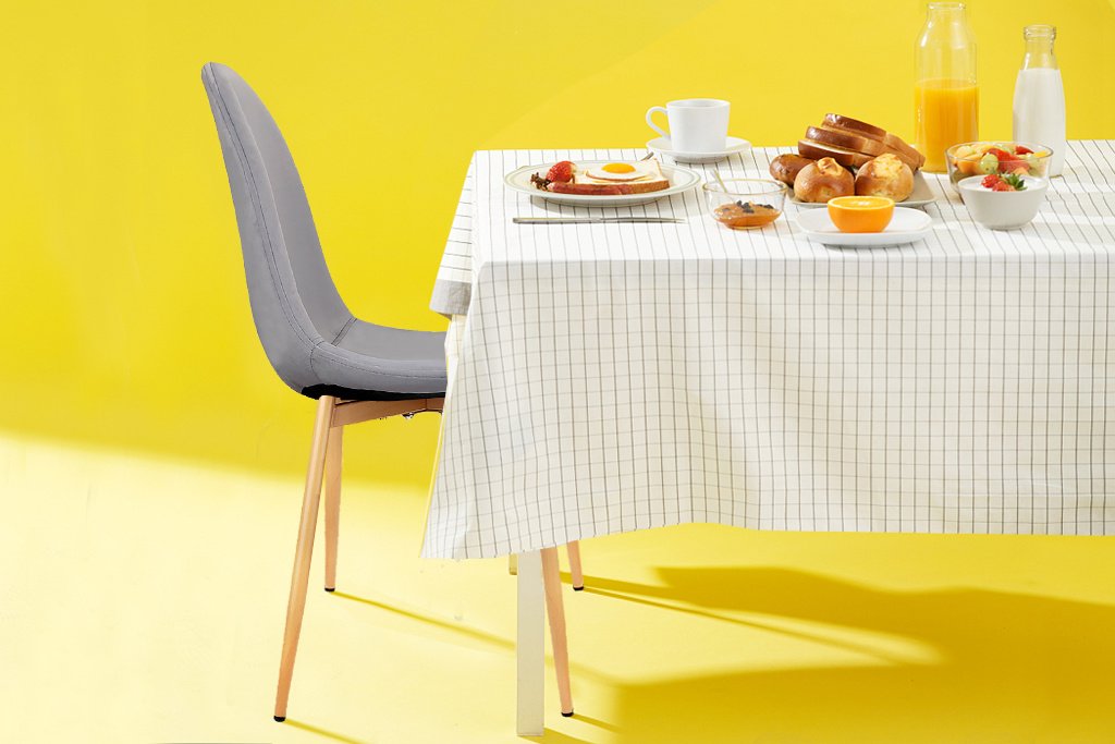 2.Materials: The chairs are fitted with comfortable foam padded seats and are covered in smooth fabric. The signature steel tapered legs are finished in faux wood, which is strong and stable, allowing you to sit in these chairs worry-free for a relaxed and natural style.