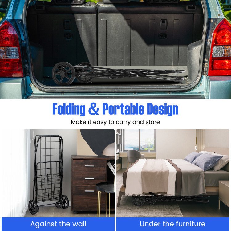1.Foldable Design: This shopping cart can be easily folded, which is very convenient for you to carry and transport. When you are not in need, you can folded it up and it doesn't take up much space.